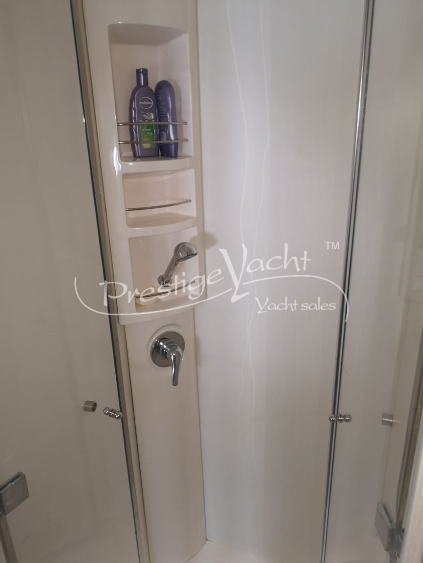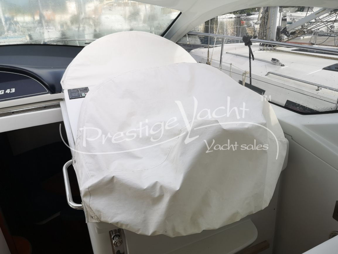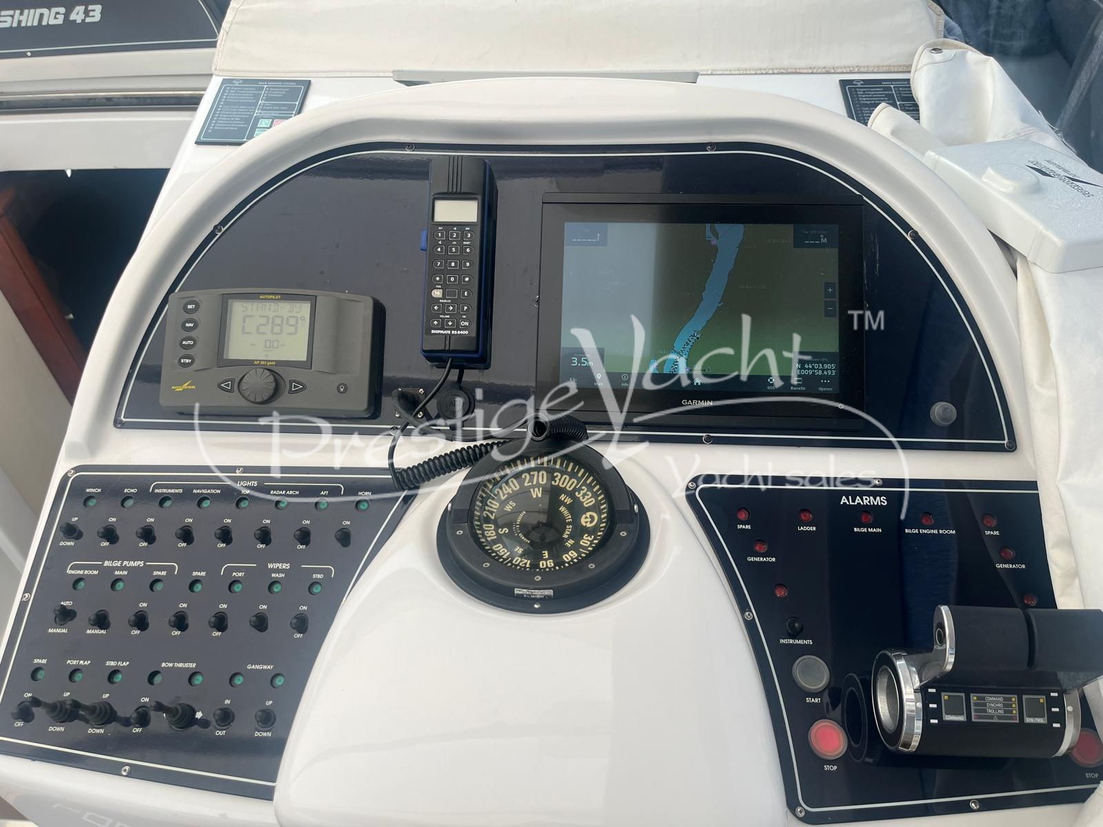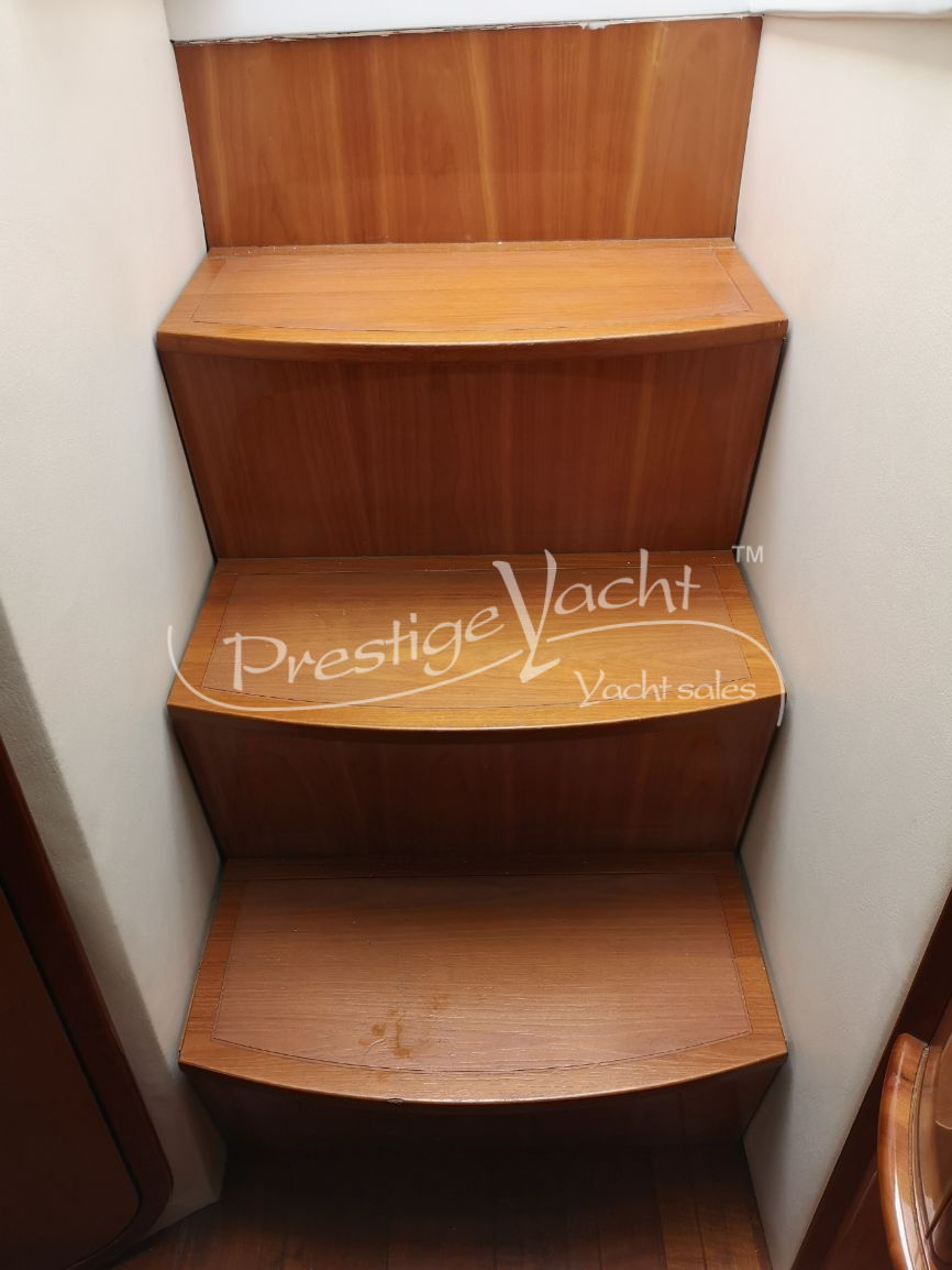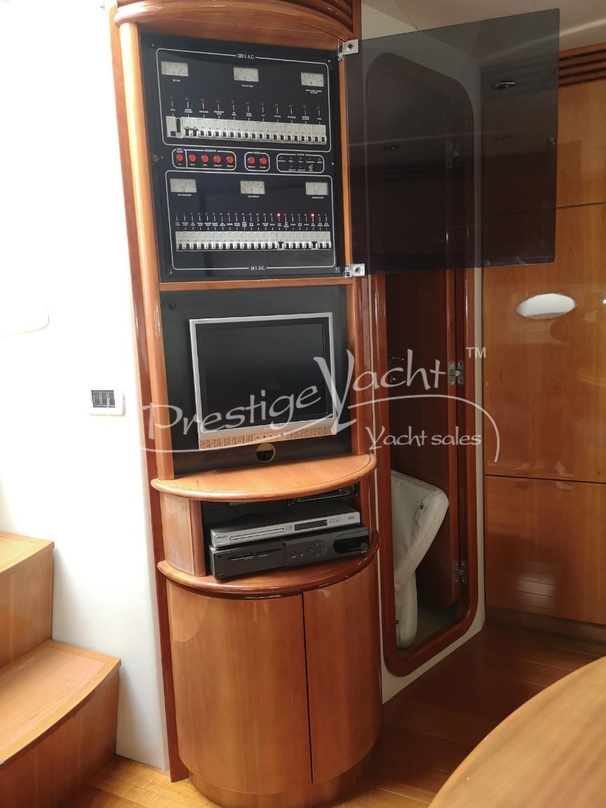 Carga baterías, Alarma motor, Autoclave, 3 Bomba de sentina automática, 2 Bomba de sentina eléctrica, Bomba de sentina manual, Cubierta Teak, Ducha externa, Escalera de baño, Flap hidráulico, Hard Top, Hélice de proa, Indicador Flaps, Instalación antiincendio, Lava cadenas, Luces de cortesía, Mesa de bañera, Molinete eléctrico, Pasarela (hidráulica), Plataforma, Puerta de entrada, Toma directa de puerto, Winch de proa