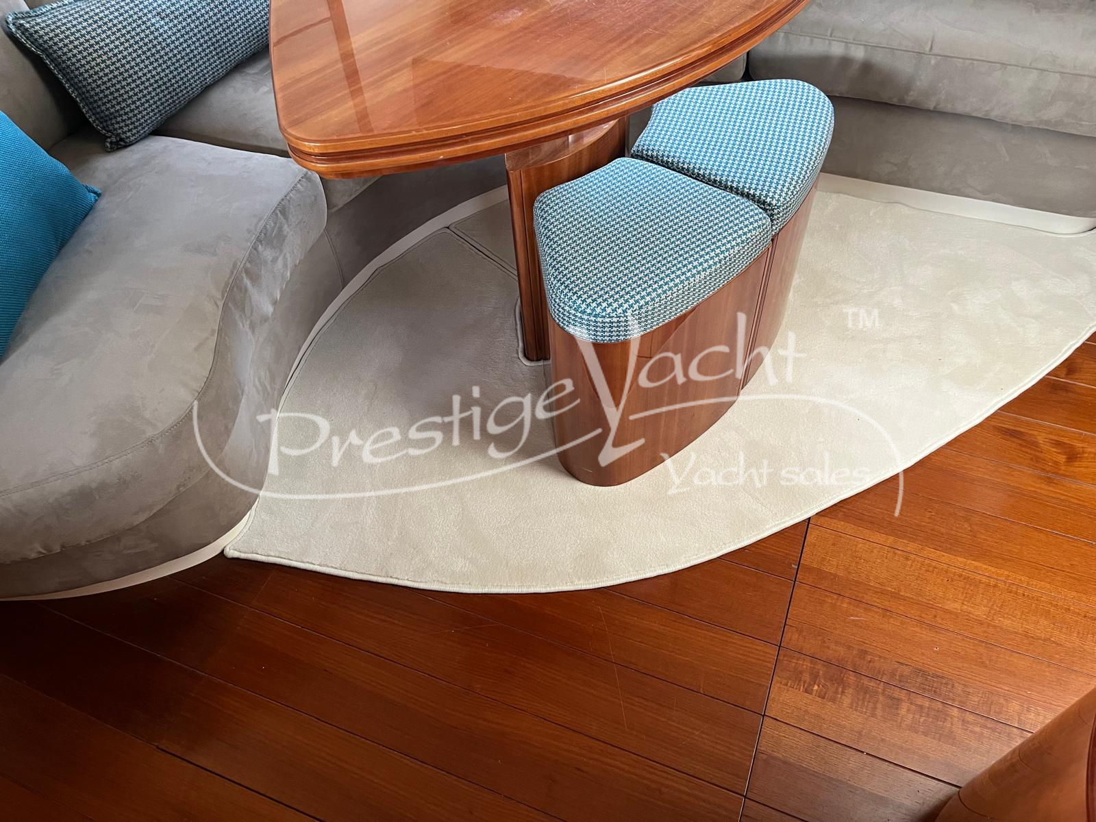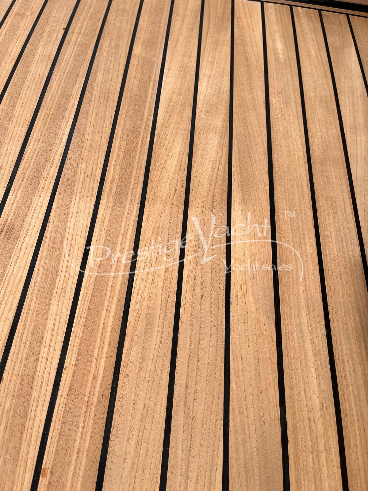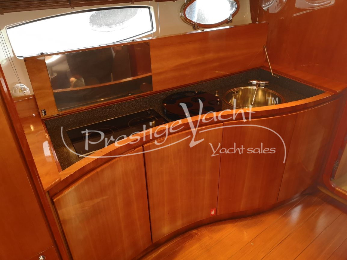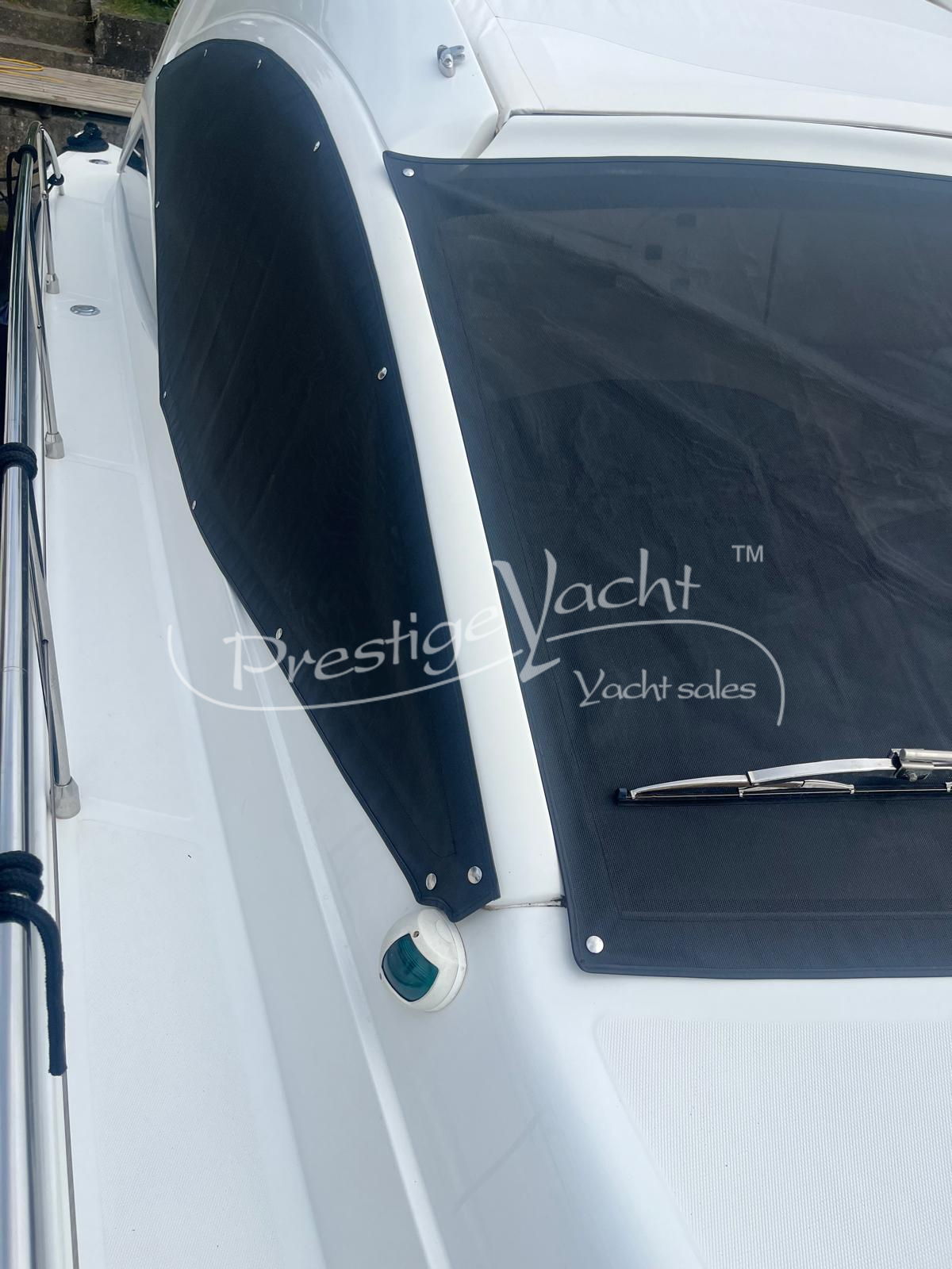 Carga baterías, Alarma motor, Autoclave, 3 Bomba de sentina automática, 2 Bomba de sentina eléctrica, Bomba de sentina manual, Cubierta Teak, Ducha externa, Escalera de baño, Flap hidráulico, Hard Top, Hélice de proa, Indicador Flaps, Instalación antiincendio, Lava cadenas, Luces de cortesía, Mesa de bañera, Molinete eléctrico, Pasarela (hidráulica), Plataforma, Puerta de entrada, Toma directa de puerto, Winch de proa