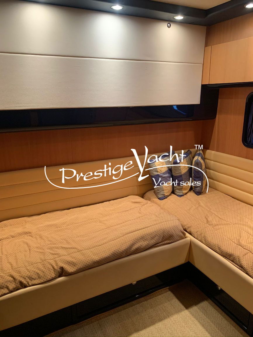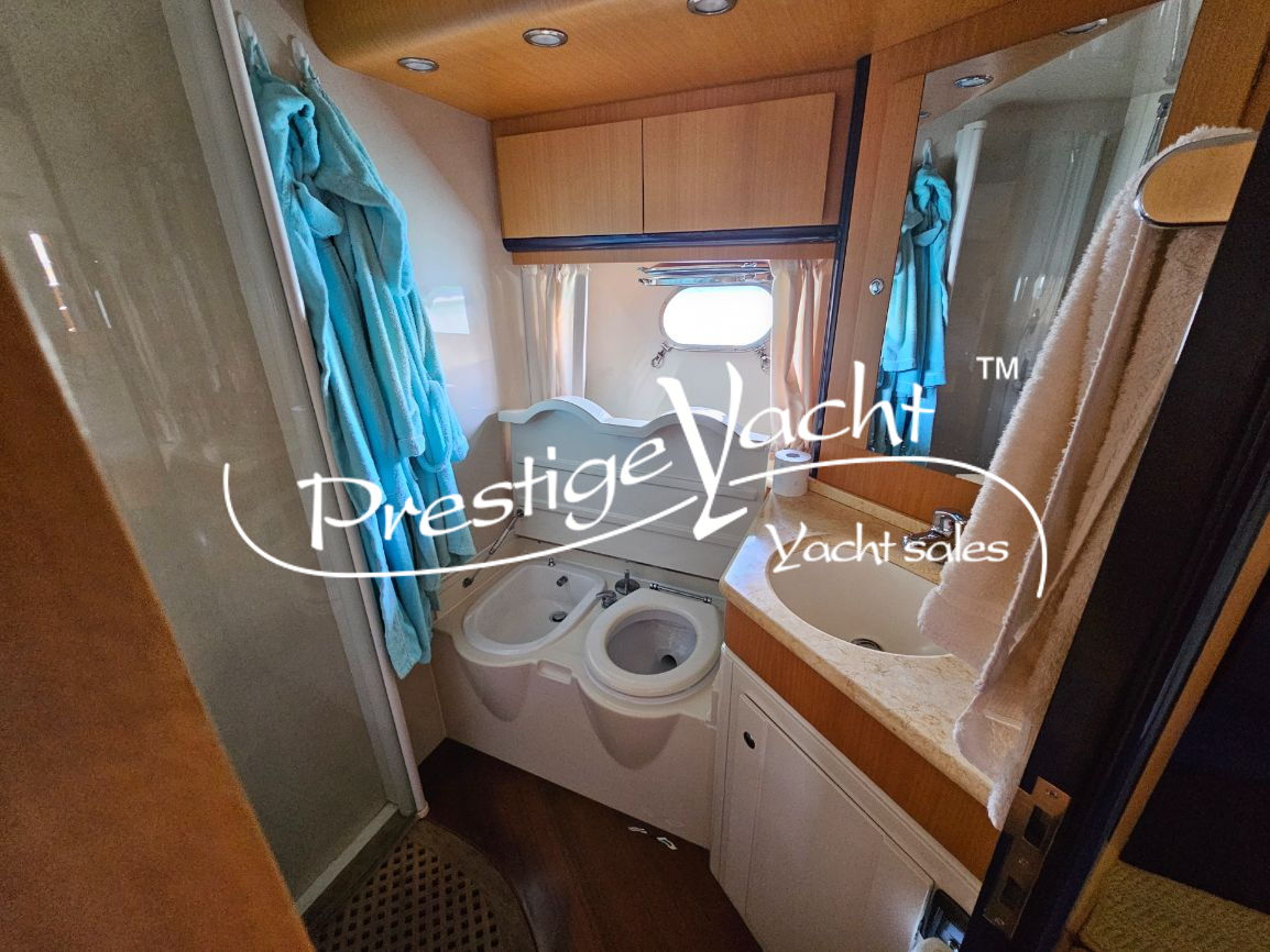 Alarme moteur, Ancre, Chargeur de batterie, Douche de cockpit, Eau sous pression, Echelle de bain, Éclairage de courtoisie, Flaps hydrauliques, Guindeau électrique, Indicateurs de flaps, Lavage de chaine, Passerelle (hydraulique), Phare de poursuite, Plateforme arrière, 4 Pompe de cale automatique, Pompe de cale manuelle, Pont en teck, Porte d'entrée, Prise de quai, Propulseur d'étrave, Radeau de sauvetage, Rollbar, système d'extinction d'incendie, Table de cockpit, Winch électrique arrière, Winch électrique avant