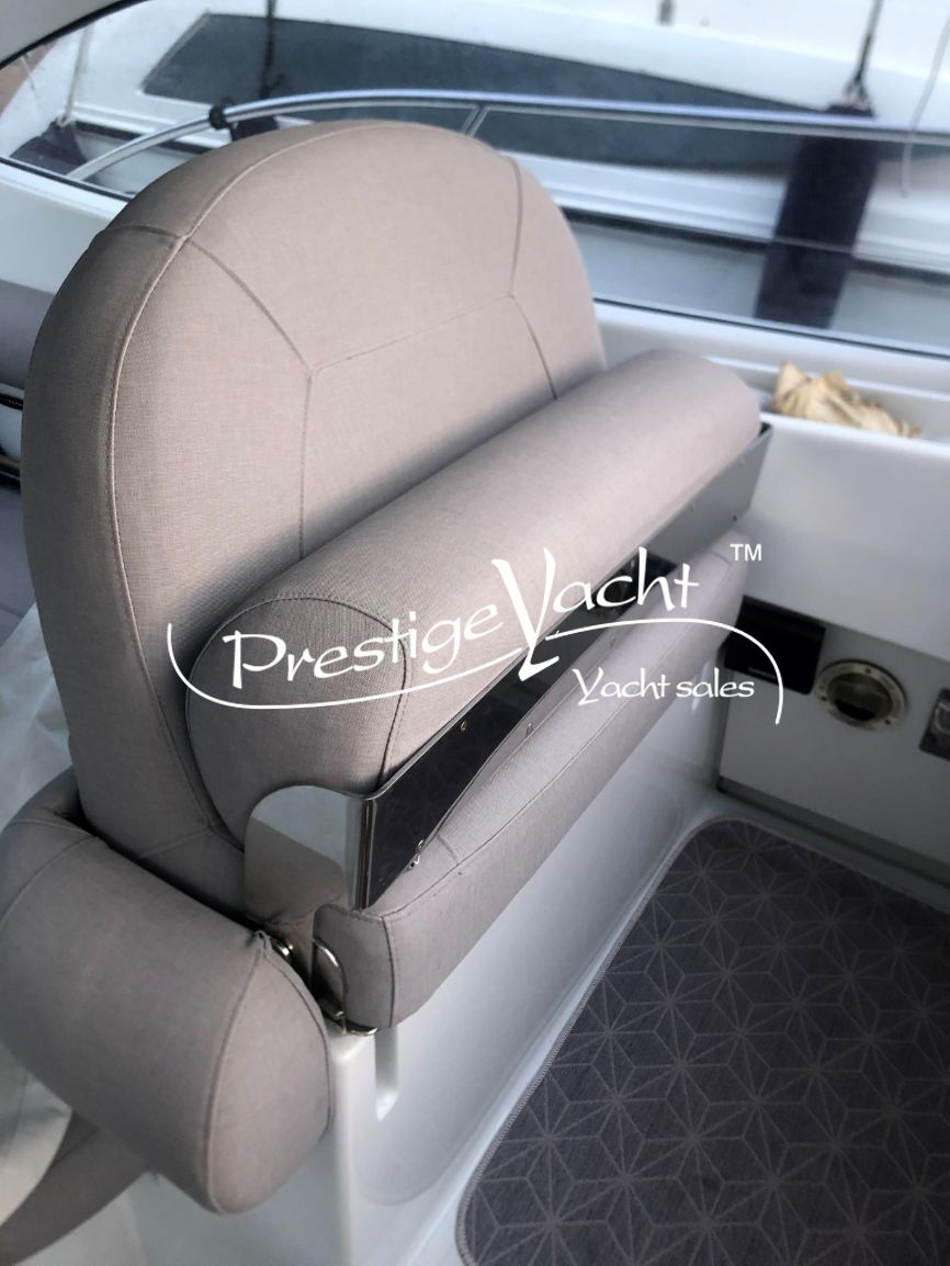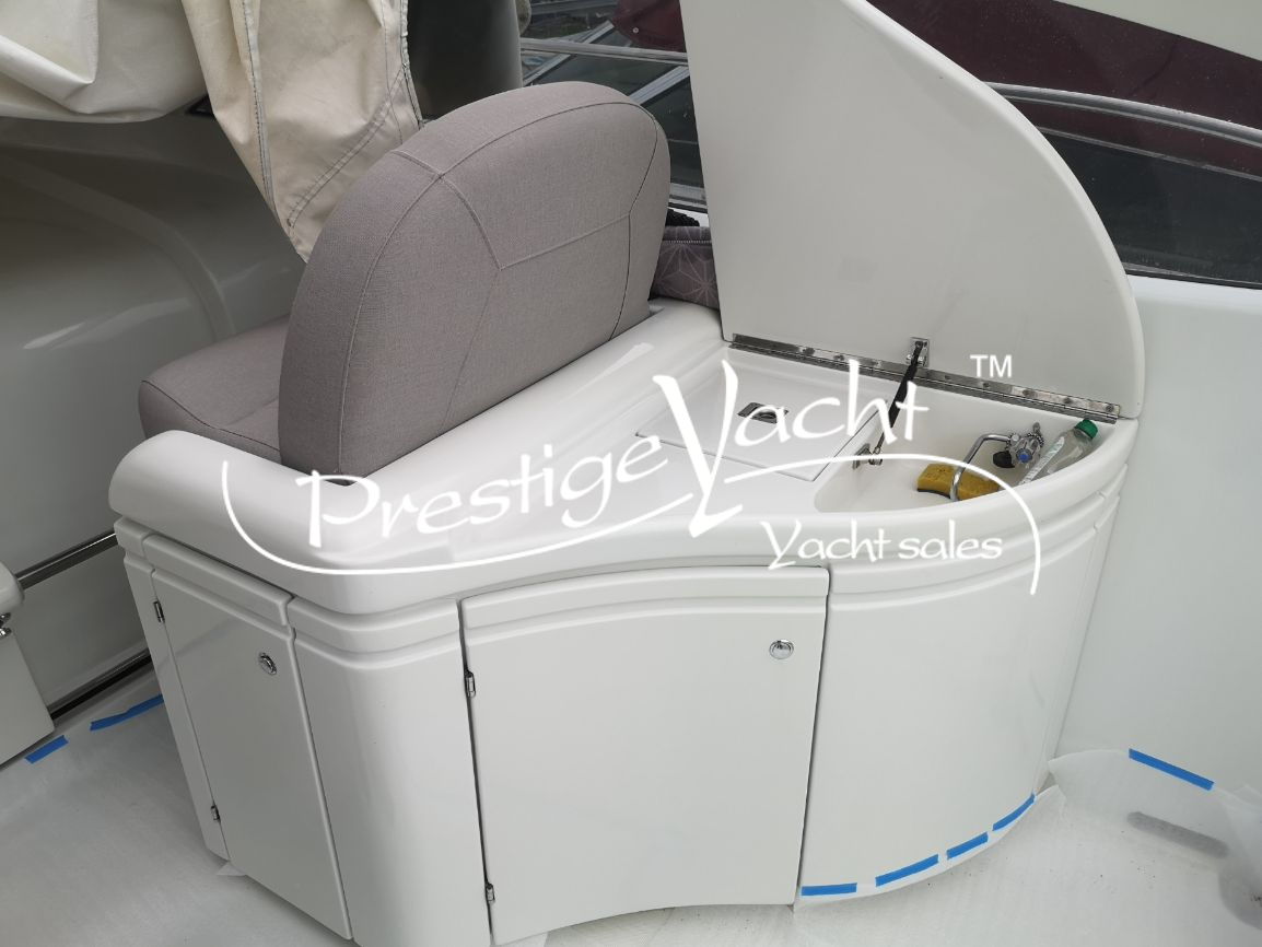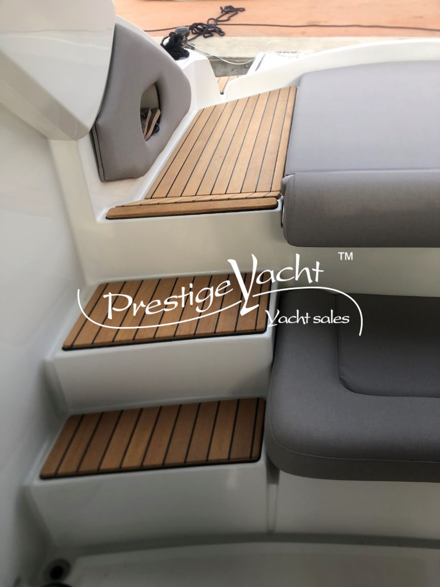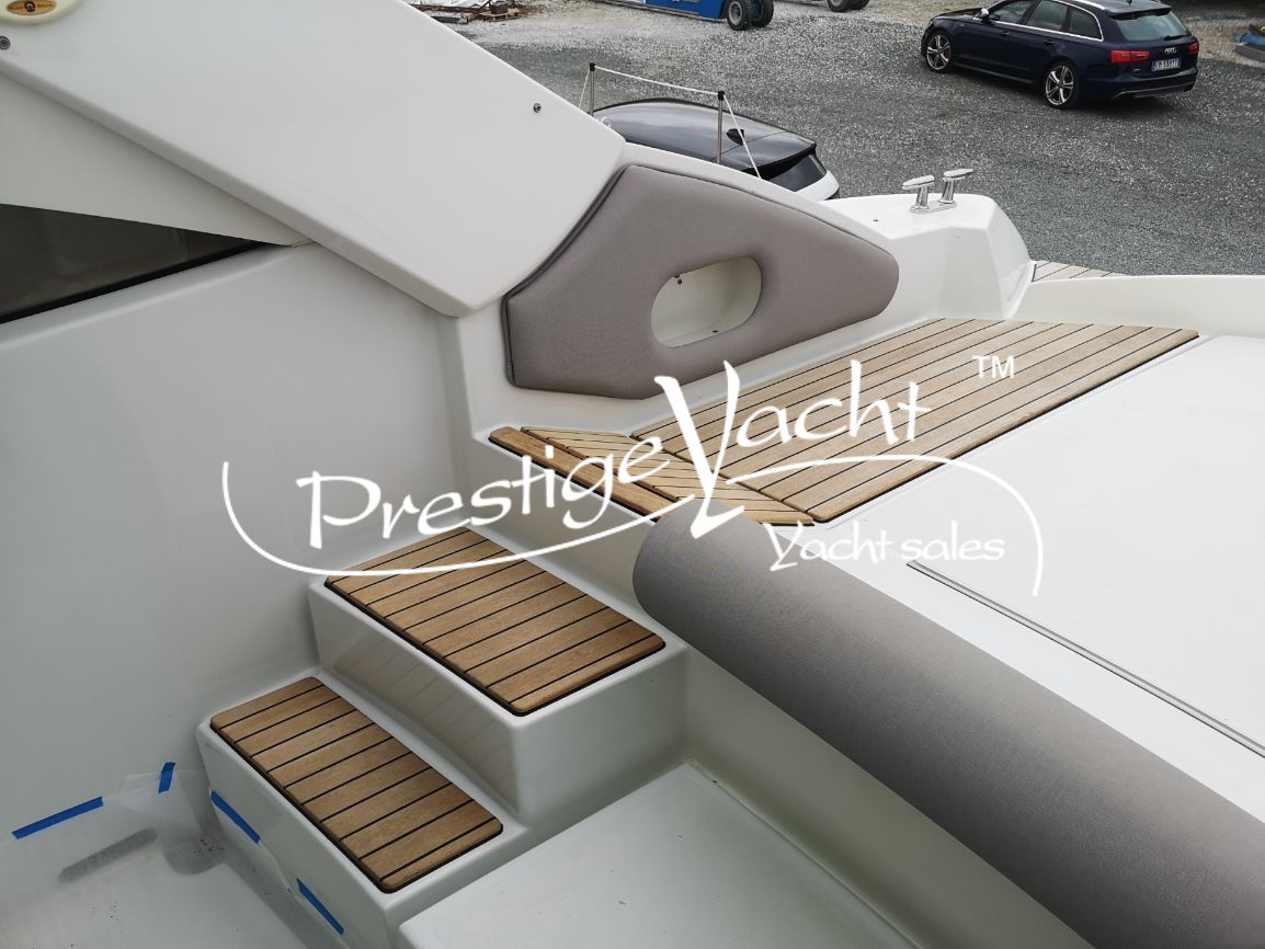 Allarme motore, Autoclave, Caricabatterie, Doccia esterna, Elica di prua, Flap idraulici, Impianto antincendio, Indicatori flaps, Luci di cortesia, Passerella (idraulica a scomparsa), Piattaforma, 3 Pompa di sentina automatica, Pompa di sentina manuale, Pozzetto in teak, Presa 220V banchina, Rollbar, Salpa ancora elettrico, Scaletta da bagno, Tavolo in pozzetto (a sollevamento idraulico), Tromba, Winch tonneggio di prua