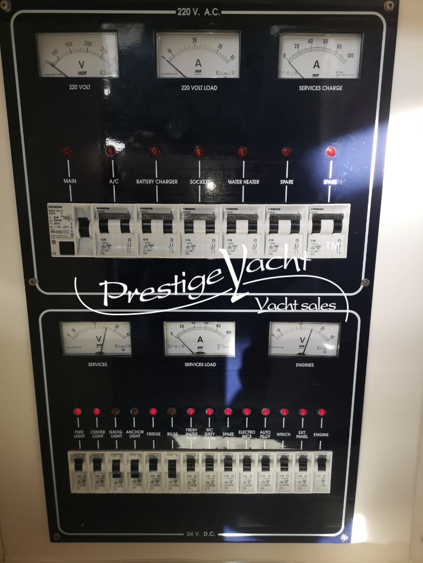 Condizioni perfette, varo e vendita 2003, mantenimento con cura, nel 2020 svolto i seguenti lavori: teack spiaggetta + scalini+ passaggio laterale nuovi, insonorizzazione nuova in sala macchine. Nel 2021 svolto i seguenti lavori: Pulizie casse gasolio, carena portata a zero, tendalini esterni + laterali nuovi, cuscineria esterna nuova, carabottino tavolo dinette esterna nuovo, gps raymarine touch nuovo con quadro strumenti nuovo. Nel 2023 revisione filtri racor e scambiatori olio invertitore. Perfetta, nessun lavoro da svolgere. Central agency.