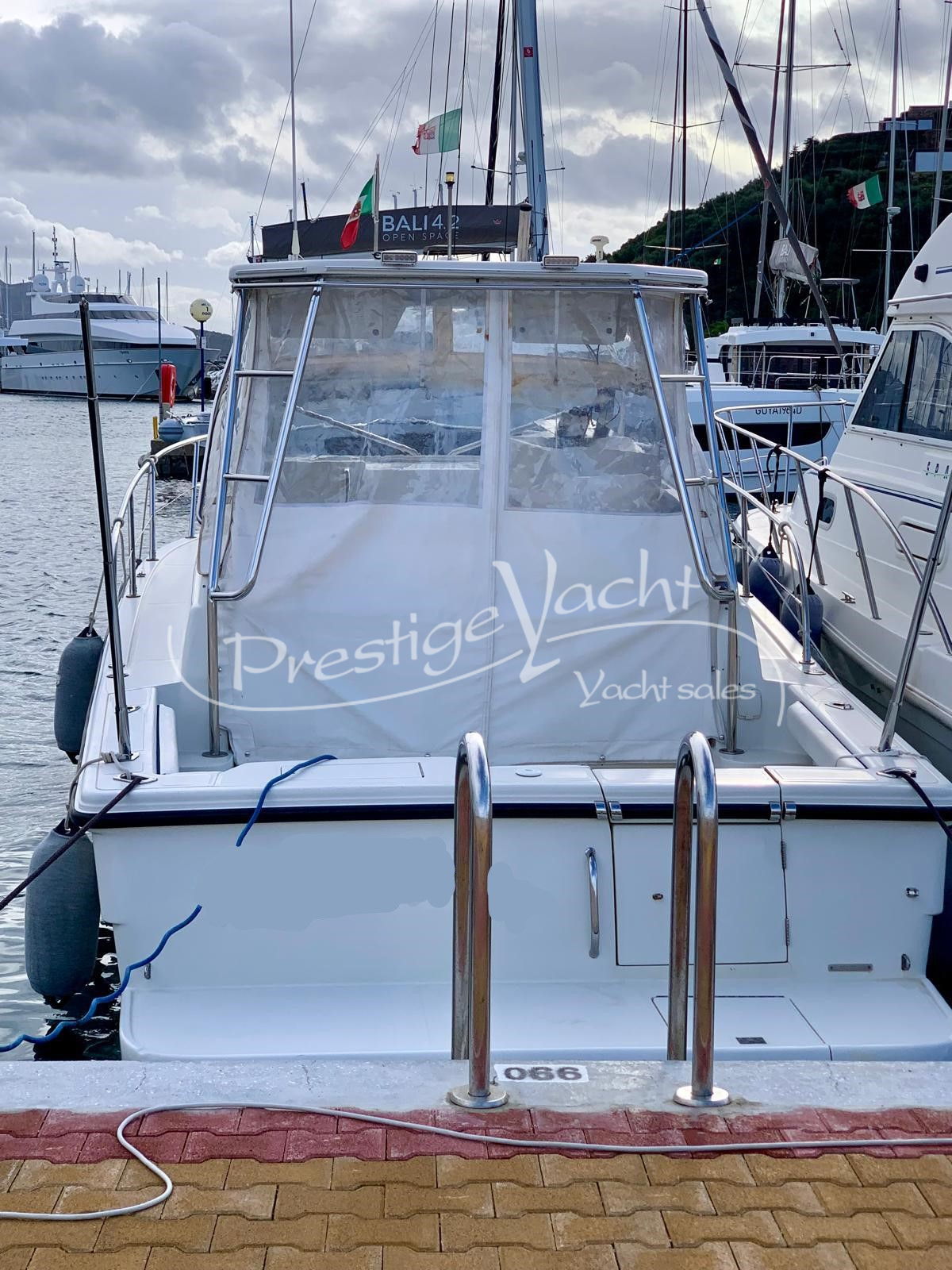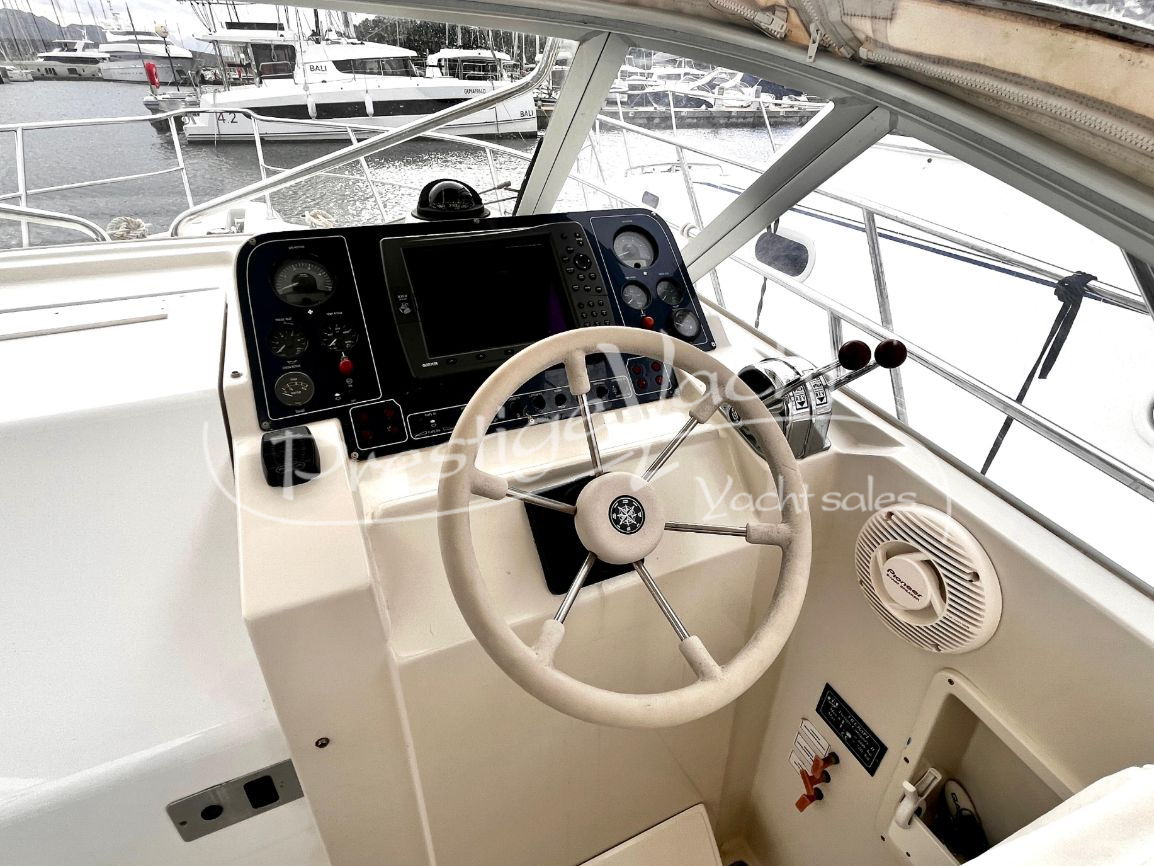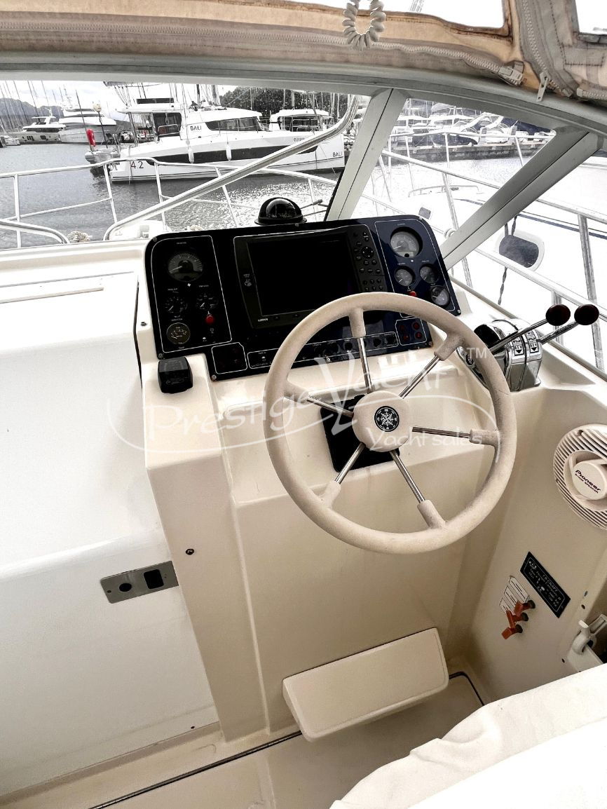 Carga baterías, Alarma motor, Autoclave, 03 Baterías, Bocina, Bomba de sentina automática, Bomba de sentina manual, Ducha externa, Escalera de baño, Flap hidráulico, Hard Top, Indicador Flaps, Instalación antiincendio, Luces de cortesía, Molinete eléctrico, Plataforma, Puerta de entrada, Rollbar, Toma directa de puerto