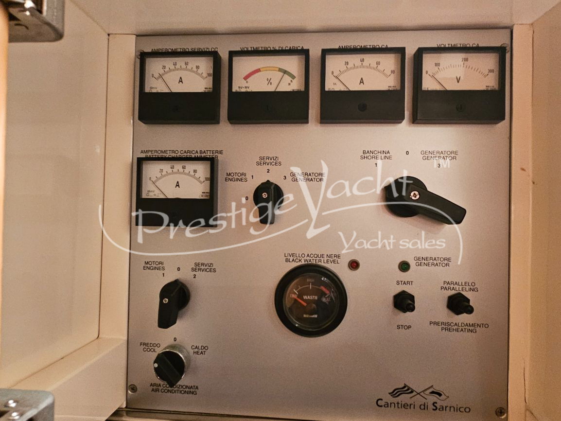 Carga baterías, Alarma motor, Autoclave, Balsa salvavidas, 04 Bomba de sentina automática, Bomba de sentina manual, Cubierta Teak, Ducha externa, Escalera de baño, Faro orientable, Flap hidráulico, Hard Top, Hélice de popa, Indicador Flaps, Instalación antiincendio, Luces de cortesía, Mesa de bañera, Molinete eléctrico, Pasarela (hidráulica), Plataforma, Puerta de entrada, Rollbar, Toma directa de puerto, Winch de proa