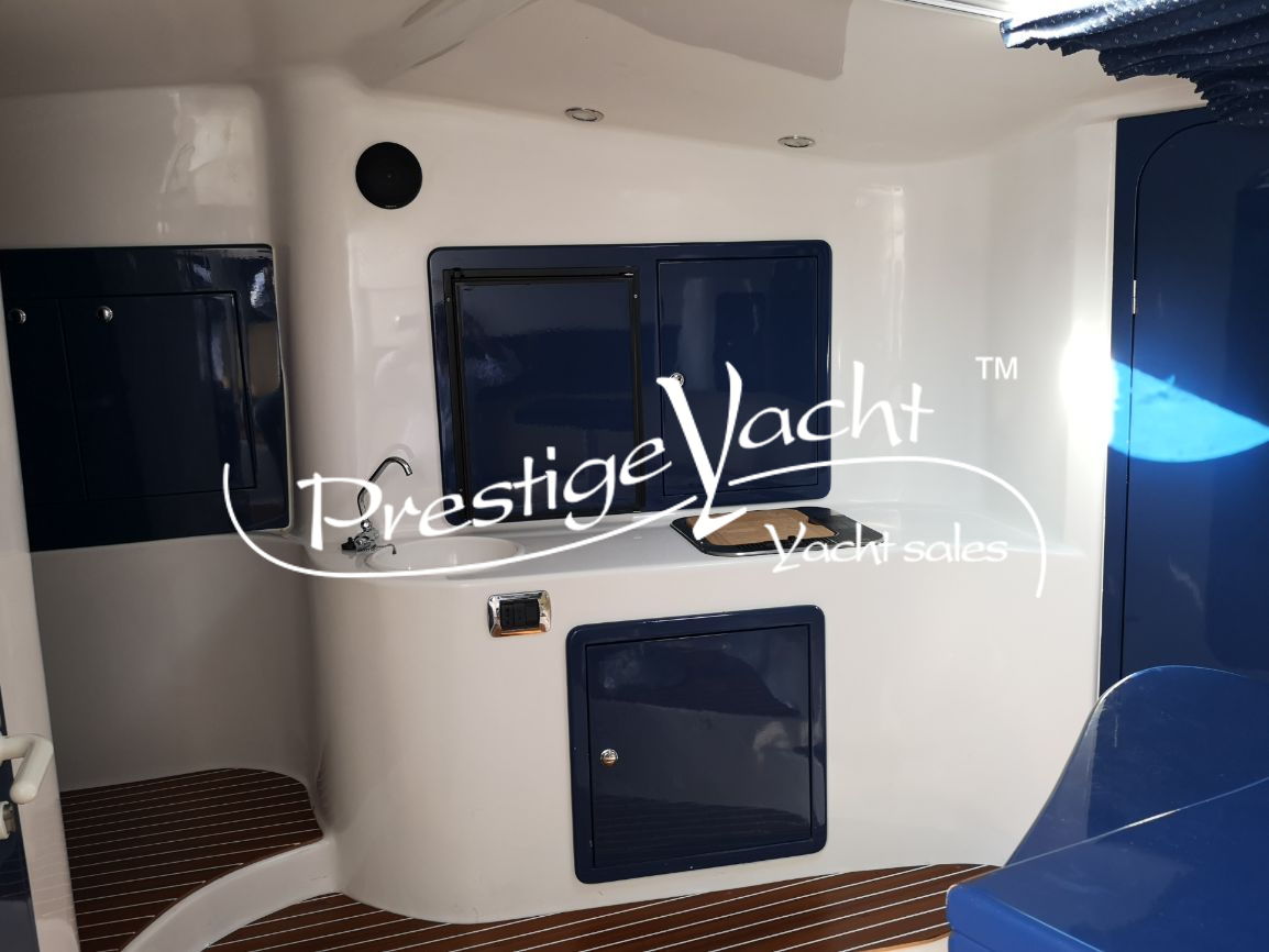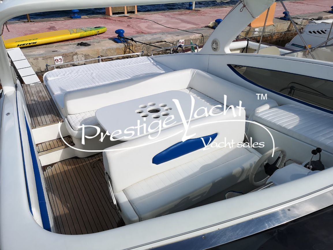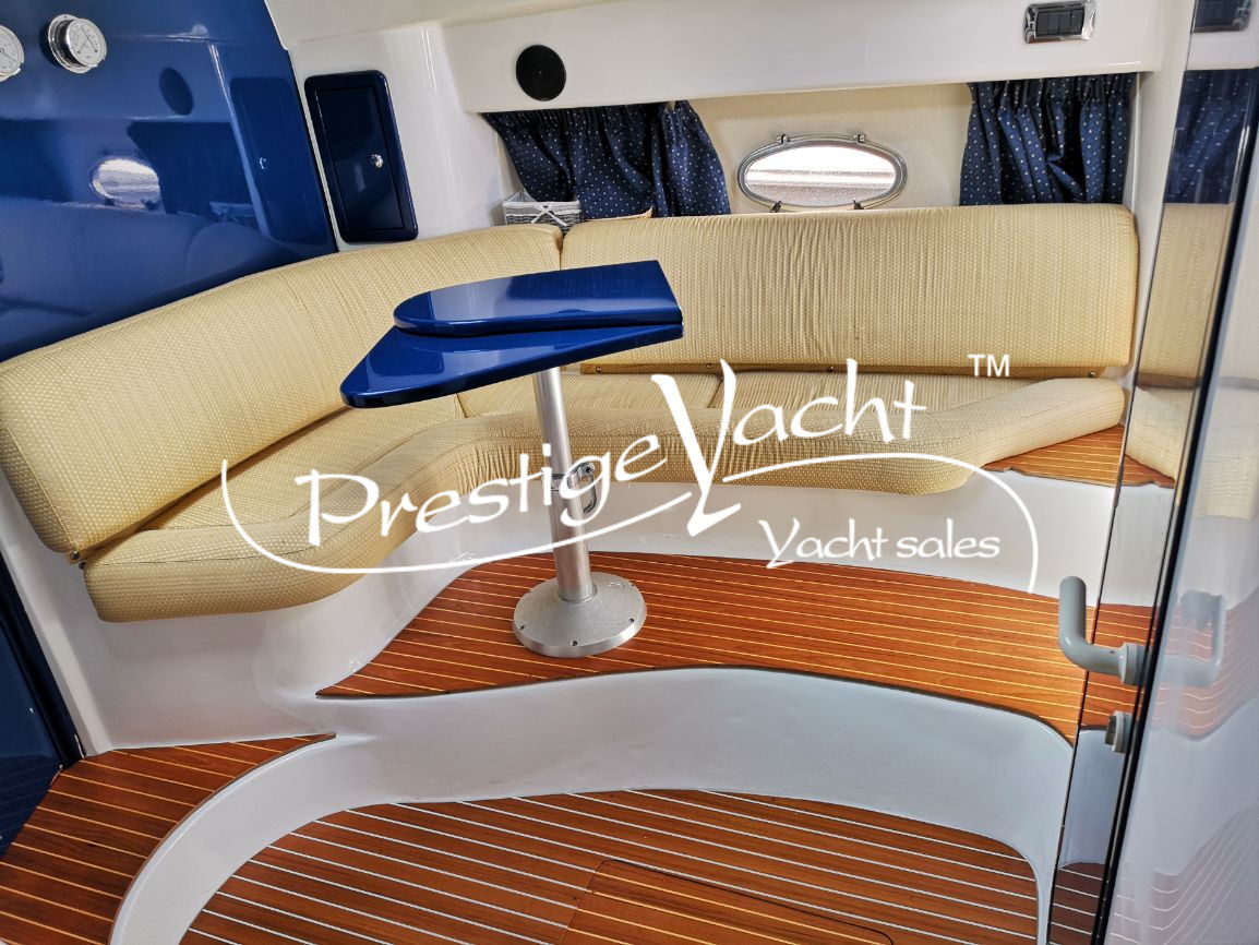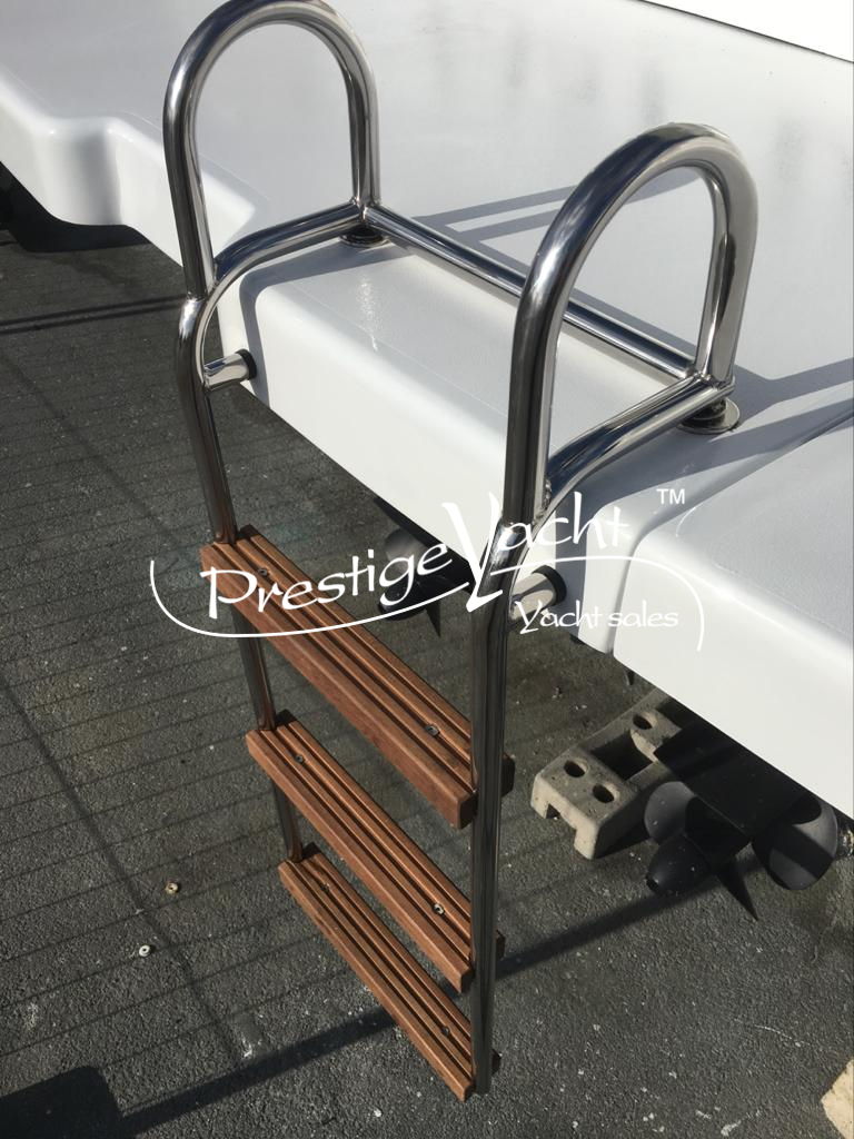 Alarme moteur, Ancre, Chargeur de batterie, Douche de cockpit, Eau sous pression, Éclairage de courtoisie, Flaps hydrauliques (Zip wake de 2020), Garage à annexe, Guindeau électrique, Indicateurs de flaps, Plateforme arrière, 2 Pompe de cale automatique, Pont en teck, Porte d'entrée, Prise de quai, Propulseur d'étrave, Rollbar, système d'extinction d'incendie, Table de cockpit