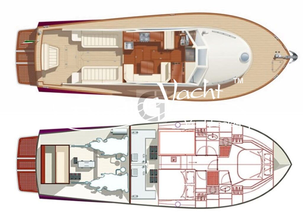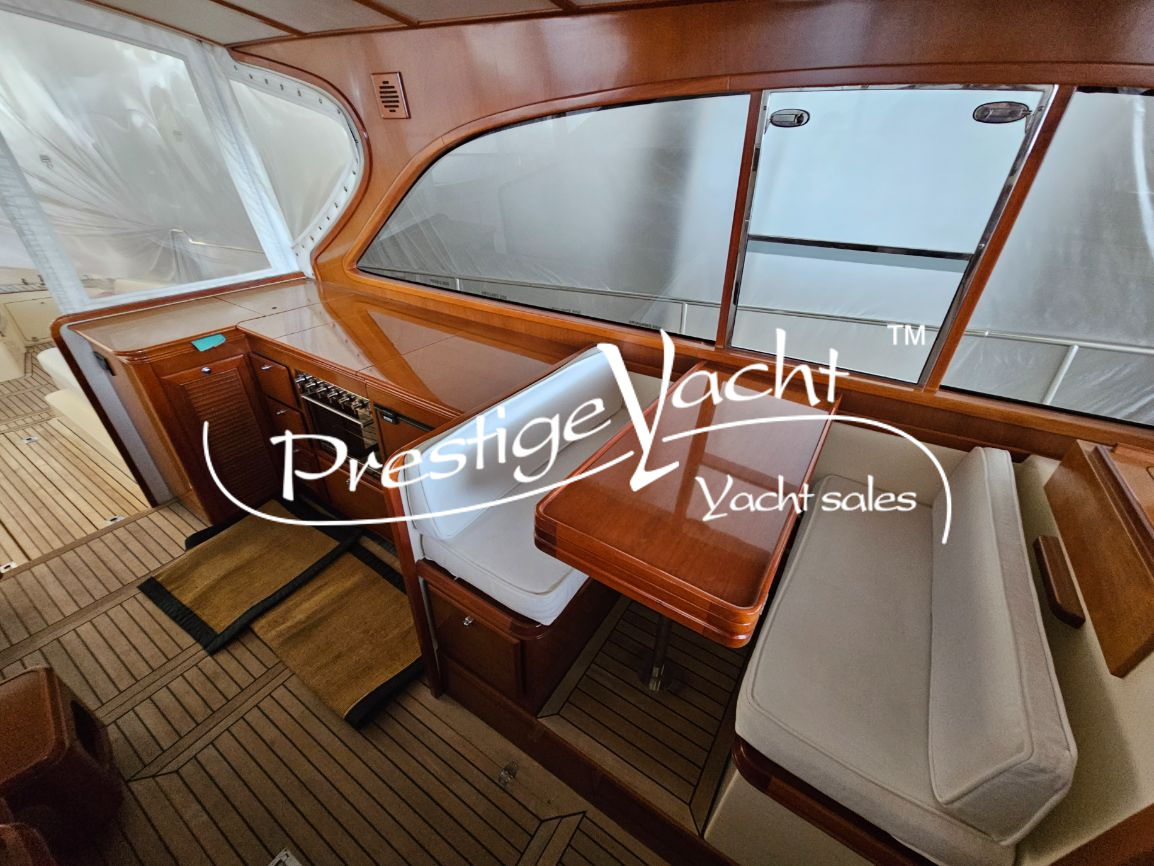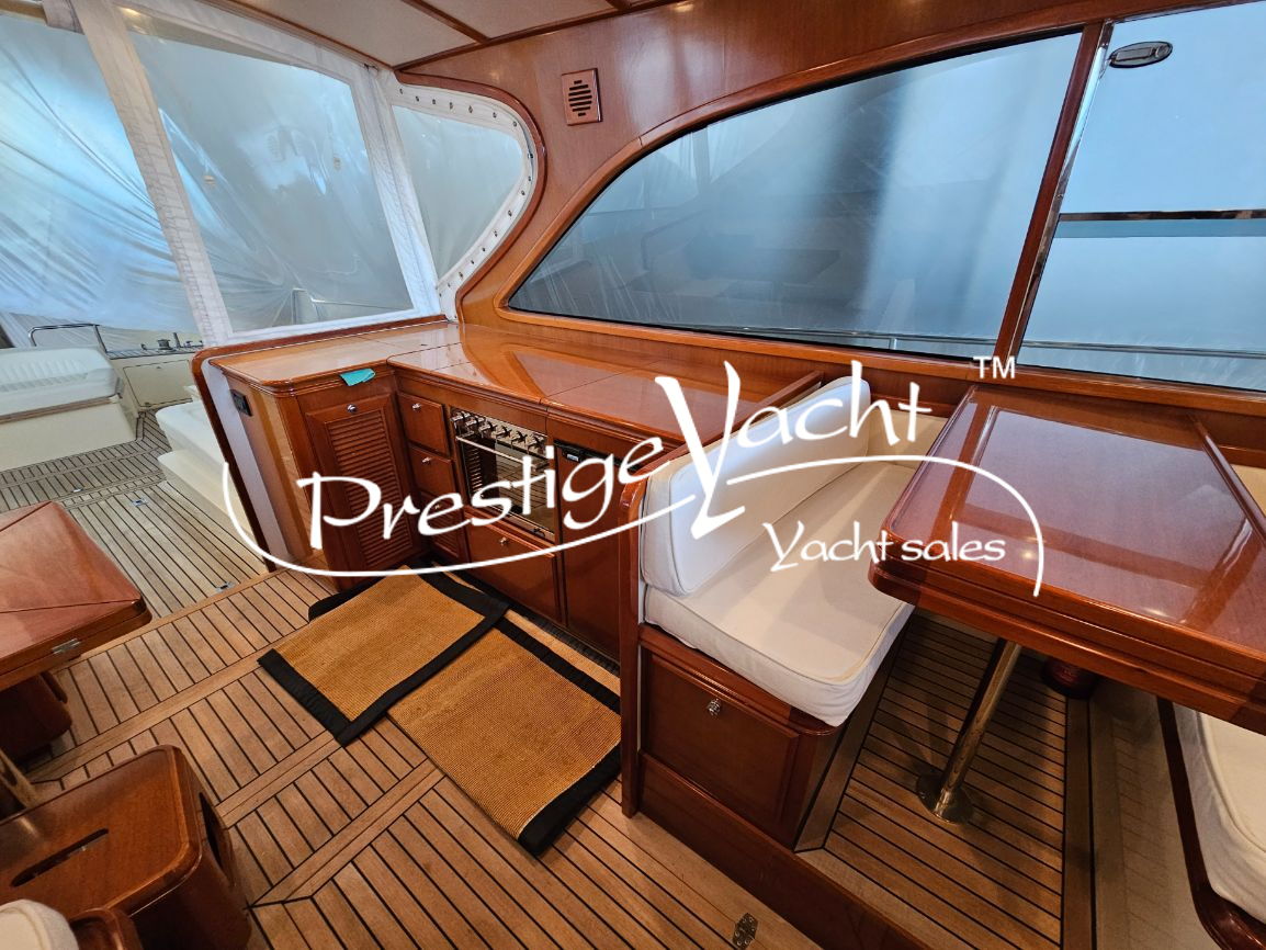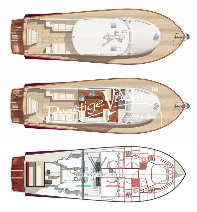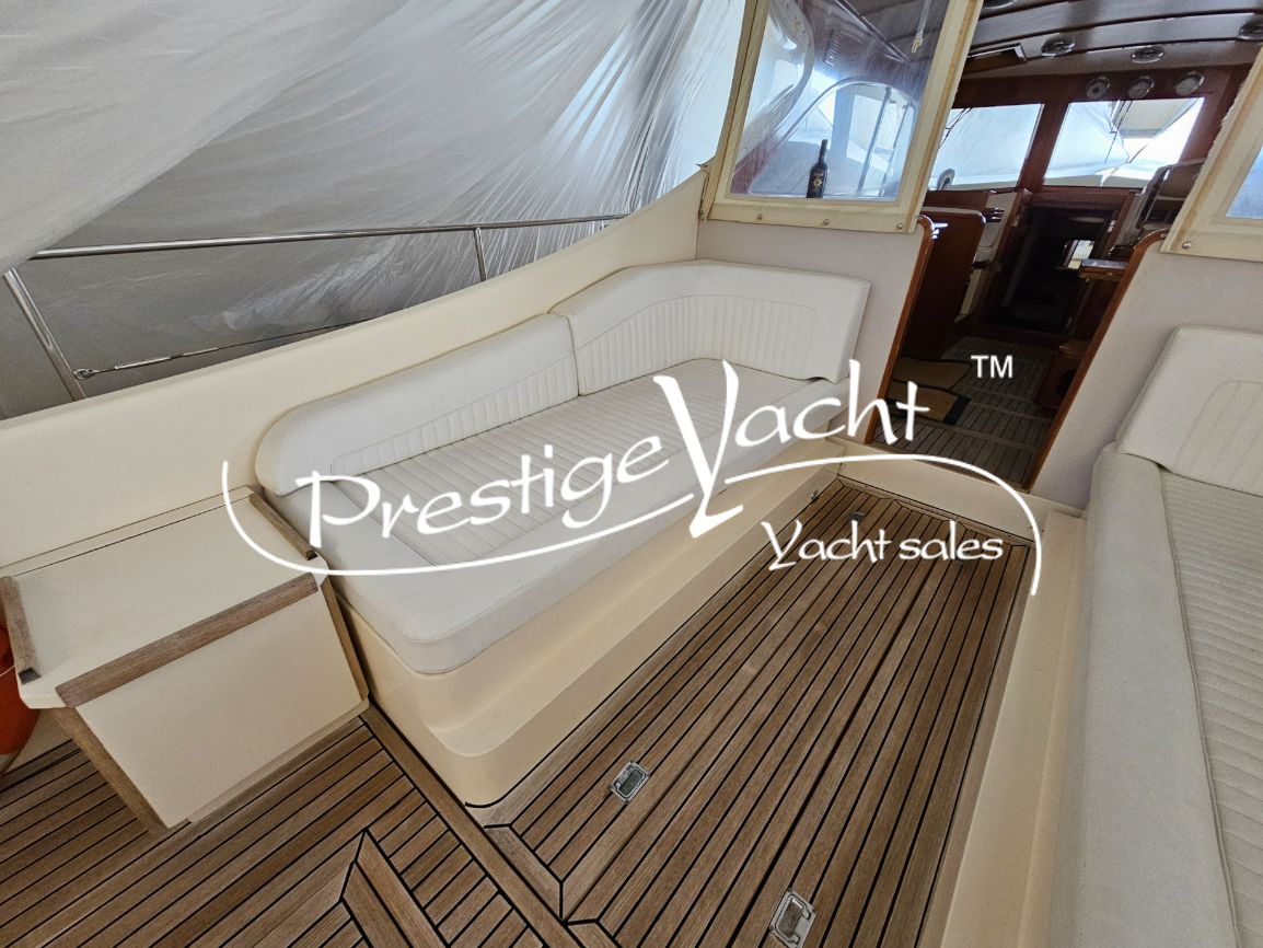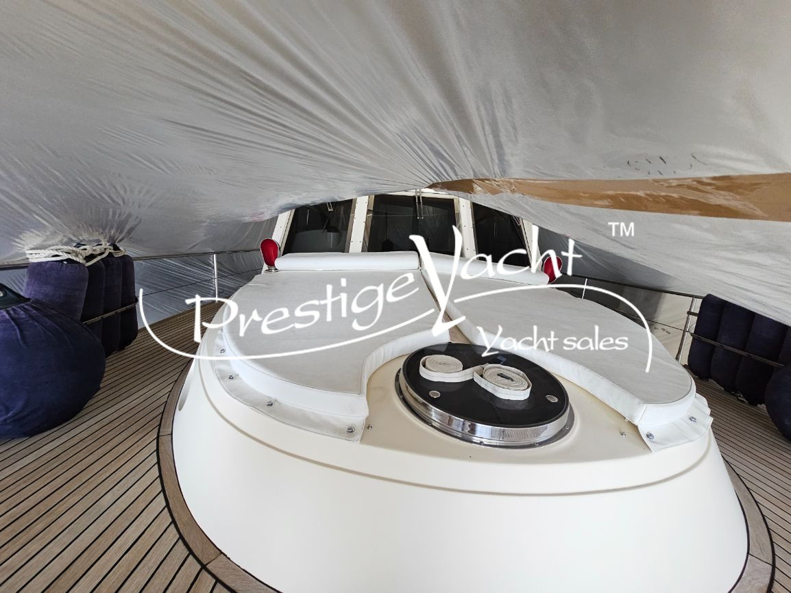 Allarme motore, Autoclave, Camminamenti laterali in teak, Caricabatterie, Doccia esterna, Elica di prua, Flap idraulici, Hard Top, Impianto antincendio, Indicatori flaps, Luci di cortesia, Passerella (idraulica), Piattaforma, 3 Pompa di sentina automatica, Pompa di sentina manuale, Porta di ingresso, Pozzetto in teak, Presa 220V banchina, Salpa ancora elettrico, Scaletta da bagno, Tavolo in pozzetto, Winch tonneggio di poppa, Winch tonneggio di prua