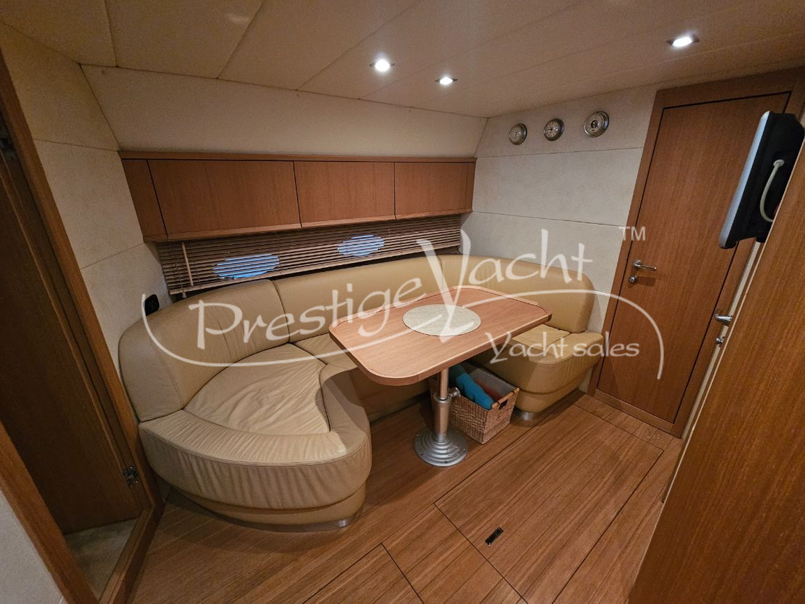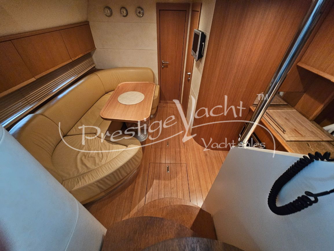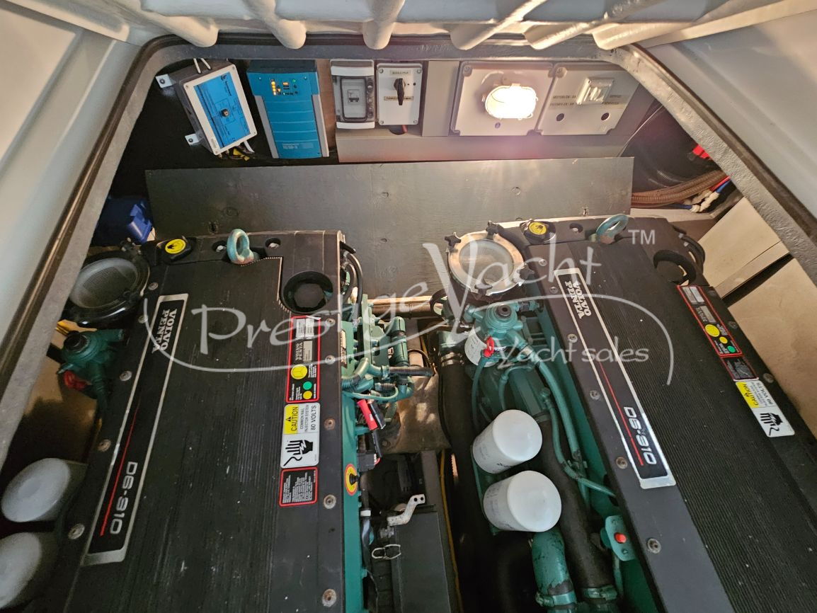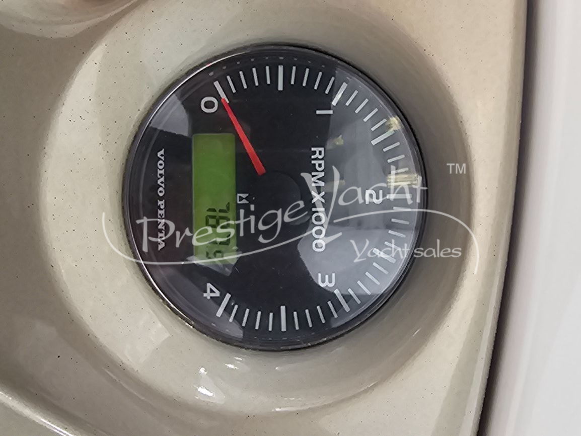 En perfecto estado, siempre guardado en interior durante los meses de invierno y en el agua durante un mes al año. Siempre revisado por Volvo, incluyendo la revisión de las 500 horas, la revisión de todos los intercambiadores de calor y una revisión general del motor. No necesita ninguna intervención. Interior y cocina sin estrenar. Suelo de mármol en la cocina. Colchas originales, telas como nuevas. Suelo de parquet y muebles interiores como nuevos. La teca de la cubierta de playa y los toldos exteriores necesitan ser reemplazados, y el casco necesita ser pulido.