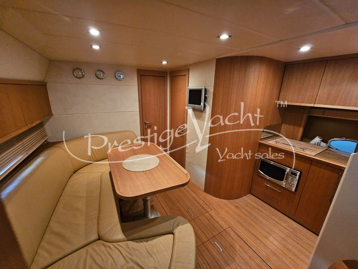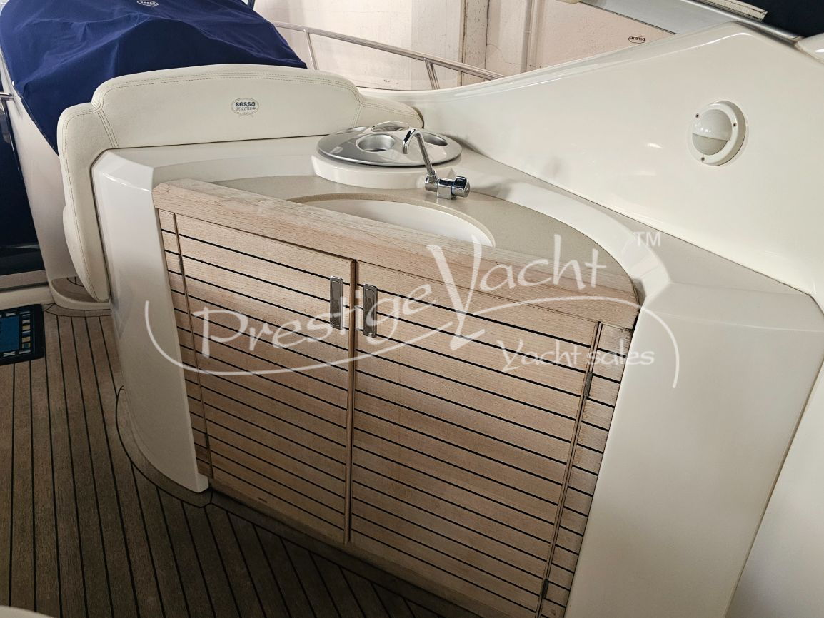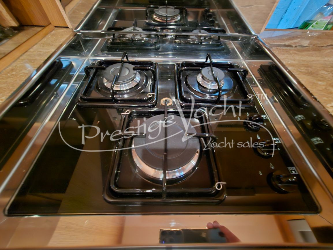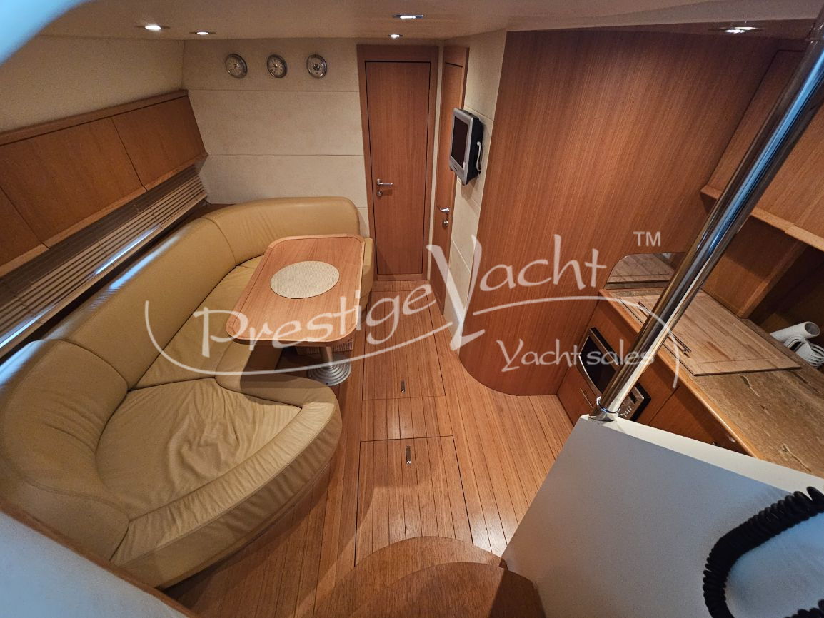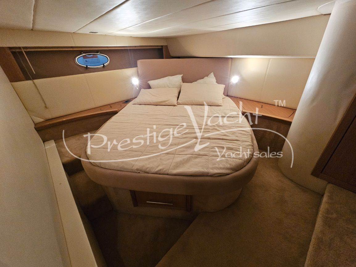En perfecto estado, siempre guardado en interior durante los meses de invierno y en el agua durante un mes al año. Siempre revisado por Volvo, incluyendo la revisión de las 500 horas, la revisión de todos los intercambiadores de calor y una revisión general del motor. No necesita ninguna intervención. Interior y cocina sin estrenar. Suelo de mármol en la cocina. Colchas originales, telas como nuevas. Suelo de parquet y muebles interiores como nuevos. La teca de la cubierta de playa y los toldos exteriores necesitan ser reemplazados, y el casco necesita ser pulido.
