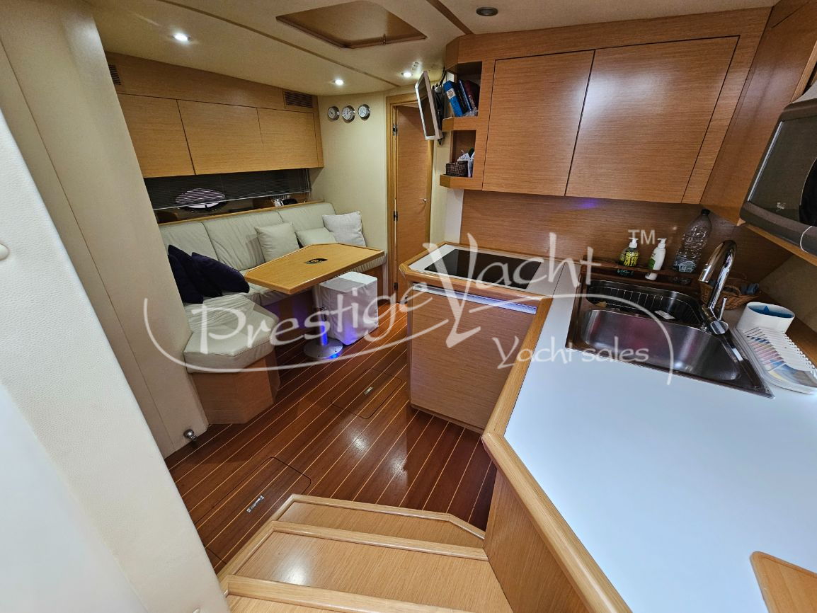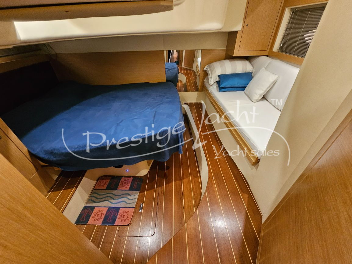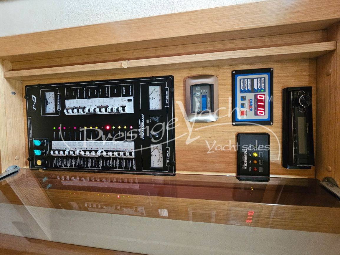 En excelente estado, siempre guardada en interior durante los meses de invierno. En 2014 se reemplazó la pata de babor; en 2016, la parte inferior de la misma; en 2018, la teca de la plataforma de popa se sustituyó por teca maciza; en 2020, la teca maciza de la bañera; se reemplazaron los cristales de plexiglás delanteros y laterales; en 2022, se desmontaron los motores y se sustituyeron la carcasa y la culata del motor de babor, además de instalarse un nuevo molinete; en 2023, se reemplazaron todas las baterías; en 2024, el casco se pintó de blanco con Awlgrip, se añadieron cojines nuevos de proa y popa, se reemplazaron las hélices de la pata de babor, el colchón de la cama de proa y un frigorífico nuevo en el comedor; en 2025, se instaló un toldo de popa nuevo, se pulió completamente el casco y se añadió una cadena de ancla de 75 m. En excelente estado, una oportunidad inmejorable.