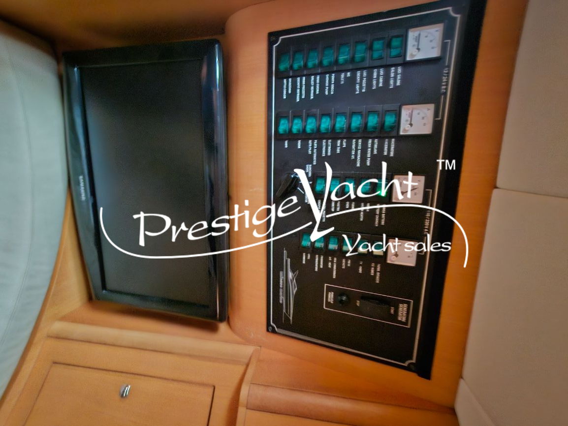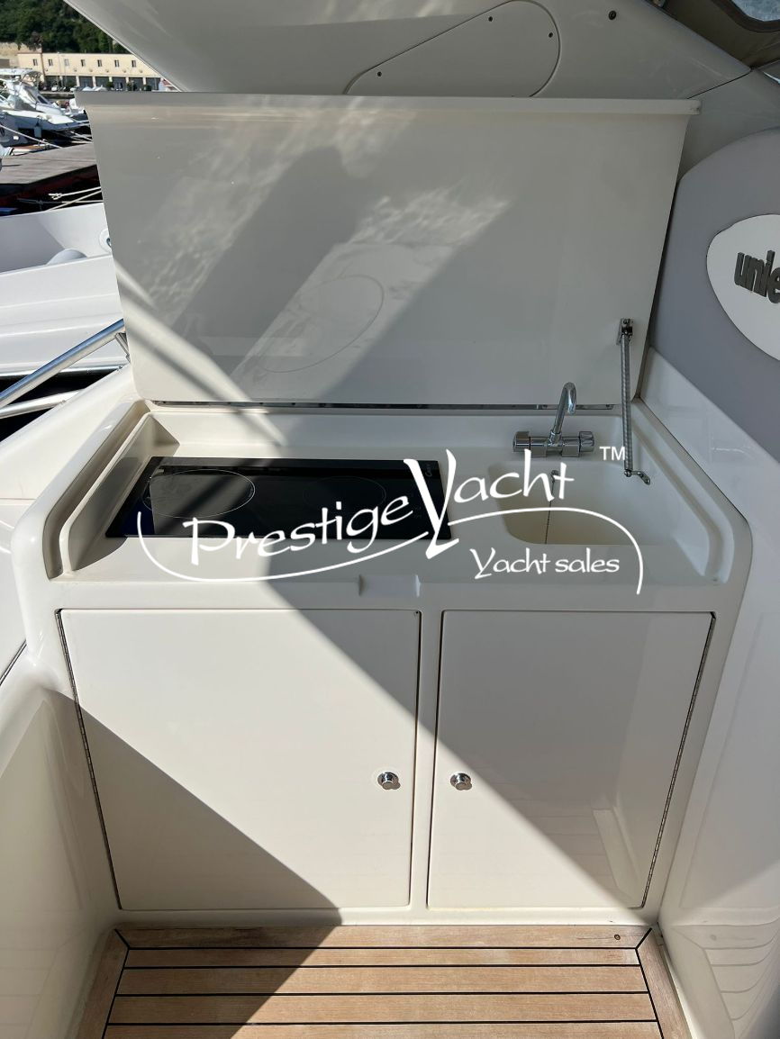 Allarme motore, Autoclave, Autogonfiabile, Caricabatterie, Doccia esterna, Elica di prua, Faro orientabile, Flap idraulici, Impianto antincendio, Indicatori flaps, Lavaggio catena, Luci di cortesia, Passerella (idraulica), Piattaforma, 03 Pompa di sentina automatica, Pompa di sentina manuale, Porta di ingresso, Pozzetto in teak, Presa 220V banchina, Presa acqua banchina, Rollbar, Salpa ancora elettrico, Scaletta da bagno, Tavolo in pozzetto, Winch tonneggio di prua
