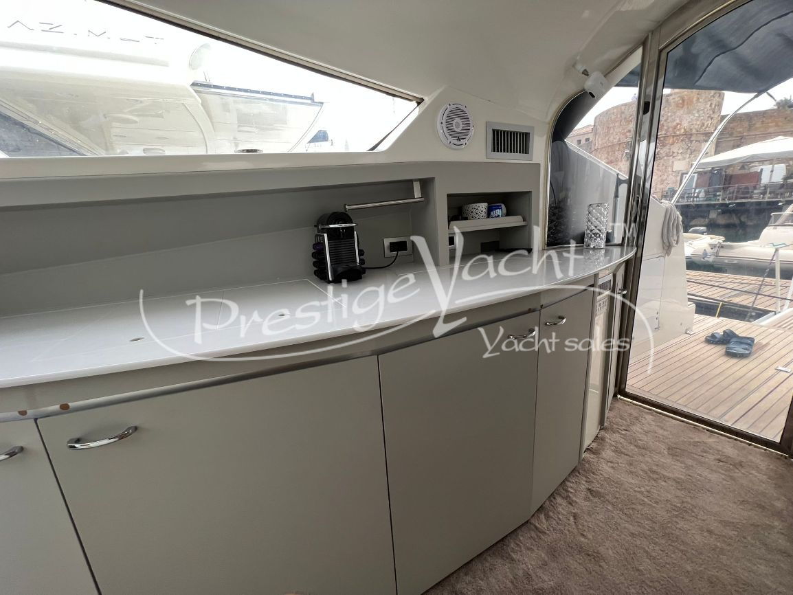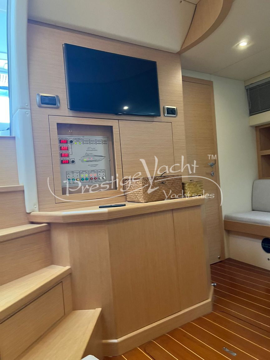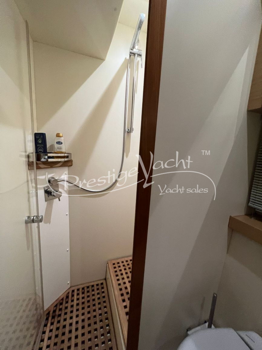 Carga baterías, Luces subacuáticas, Alarma motor, Autoclave, Balsa salvavidas, Baterías, 3 Bomba de sentina automática, Bomba de sentina eléctrica, Bomba de sentina manual, Cubierta Teak, Ducha externa, Escalera de baño, Faro orientable, Flap hidráulico, Garage para tender, Hard Top, Hélice de proa, Indicador Flaps, Instalación antiincendio, Lava cadenas, Luces de cortesía, Mesa de bañera, Molinete eléctrico, Pasarela (hidráulica retráctil), Pasillos laterales en teca, Plataforma, Puerta de entrada, Rollbar, Tender (+Facebook), Toma agua directa de puerto, Toma directa de puerto, Winch de popa