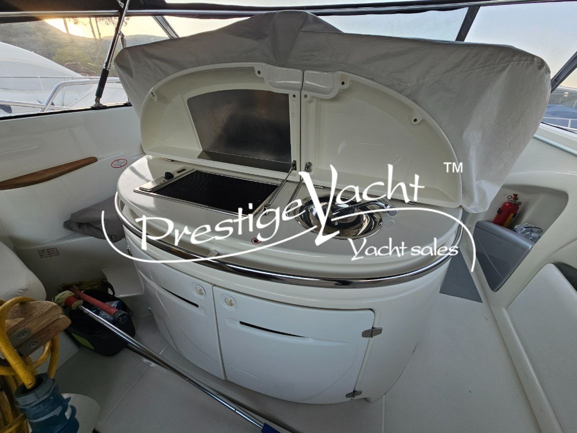 Allarme motore, Autoclave, Caricabatterie, Doccia esterna, Elica di prua, Faro orientabile, Flap idraulici, Impianto antincendio, Indicatori flaps, Luci di cortesia, Passerella (idraulica a scomparsa), Piattaforma, 03 Pompa di sentina automatica, Pompa di sentina manuale, Porta di ingresso, Pozzetto in teak, Presa 220V banchina, Presa acqua banchina, Rollbar, Salpa ancora elettrico, Scaletta da bagno, Tavolo in pozzetto, Tromba, 02 Winch tonneggio di poppa, Winch tonneggio di prua